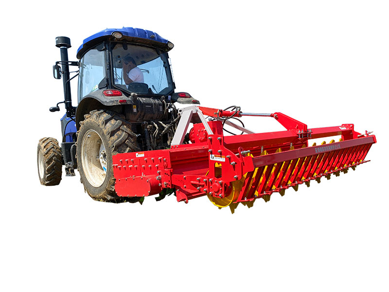 該機(jī)具主要用于旋耕整地作業(yè),農(nóng)藝順序?yàn)樾?旋耕-鎮(zhèn)壓-拖平。專利設(shè)計(jì),合理利用刀軸外端二次動(dòng)力傳輸,帶動(dòng)后刀軸工作,達(dá)到二次粉碎。機(jī)械傳動(dòng)環(huán)節(jié)少,有效節(jié)省了拖拉機(jī)的馬力消耗。一遍頂兩遍的作業(yè)模式,大大提高工作效率。前刀軸和后刀軸連續(xù)作業(yè),拖板鎮(zhèn)壓拖平,提高作業(yè)質(zhì)量。