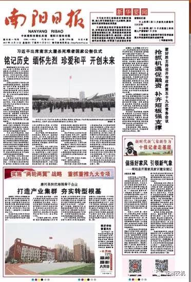 2017年 12月14日,南陽日報(bào)頭版報(bào)道唐河產(chǎn)業(yè)發(fā)展,我公司榜上有名。以下為報(bào)道全文。